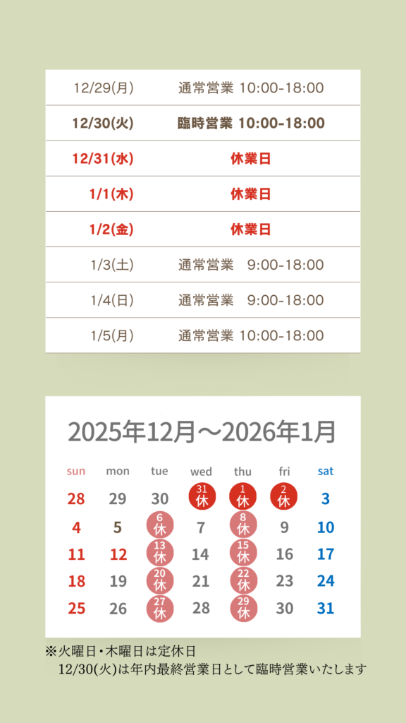 ※年末は12月30日(火)まで営業しております。